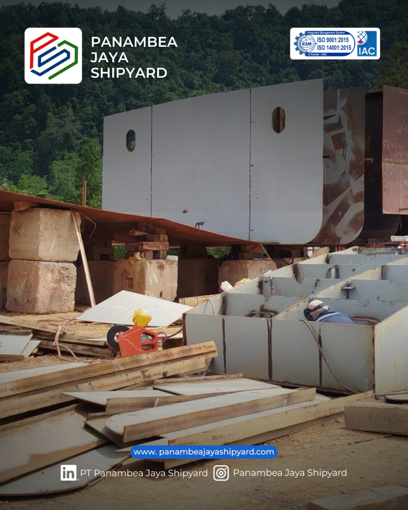 Dalam proses pembangunan, PT Panambea Jaya Shipyard menerapkan perencanaan teknis yang matang, mulai dari desain struktur kapal, pemilihan material, hingga metode pengerjaan yang mengacu pada spesifikasi teknis dan regulasi yang berlaku. Setiap elemen konstruksi dikerjakan dengan pengawasan teknis yang ketat guna memastikan kualitas dan ketepatan hasil akhir.