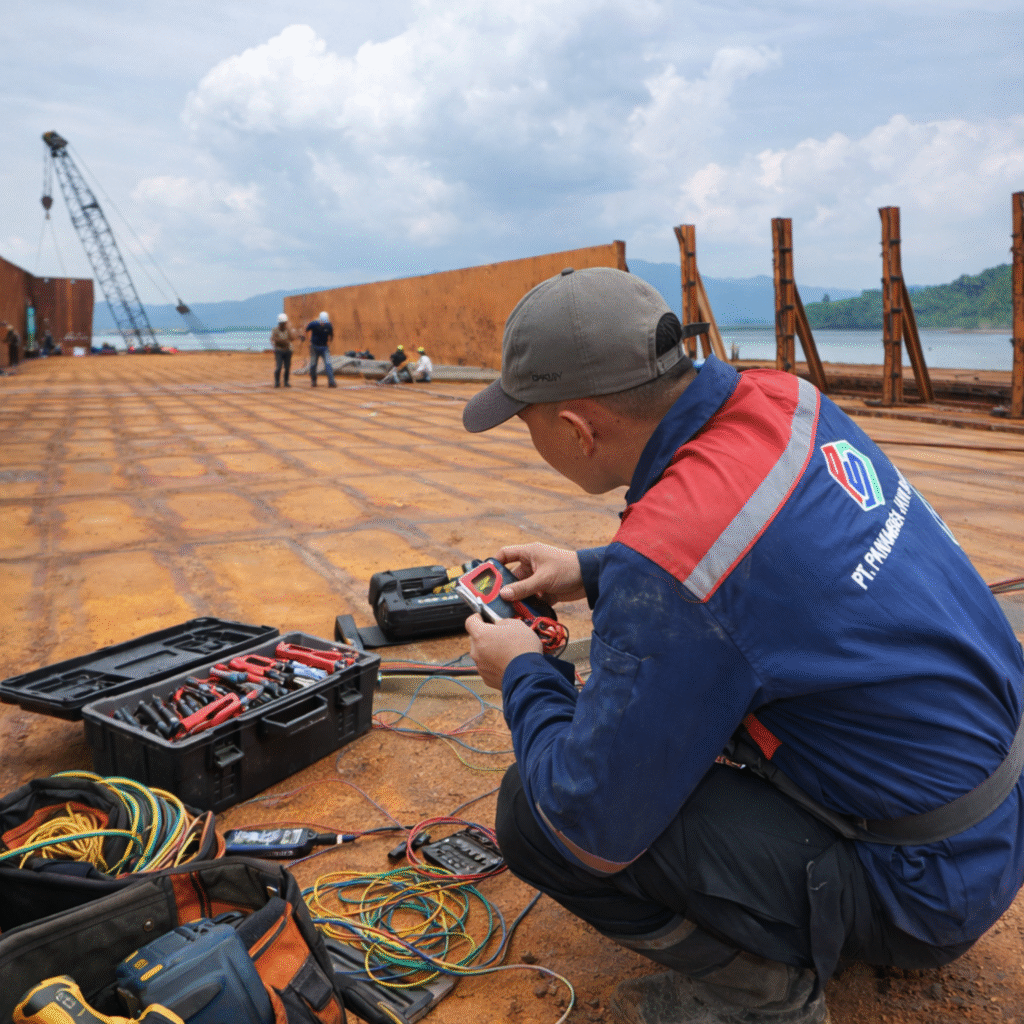 Our piping and outfitting services include fabrication, instalations, dan repair piping systems, valves, and ship components to meet operational standards.